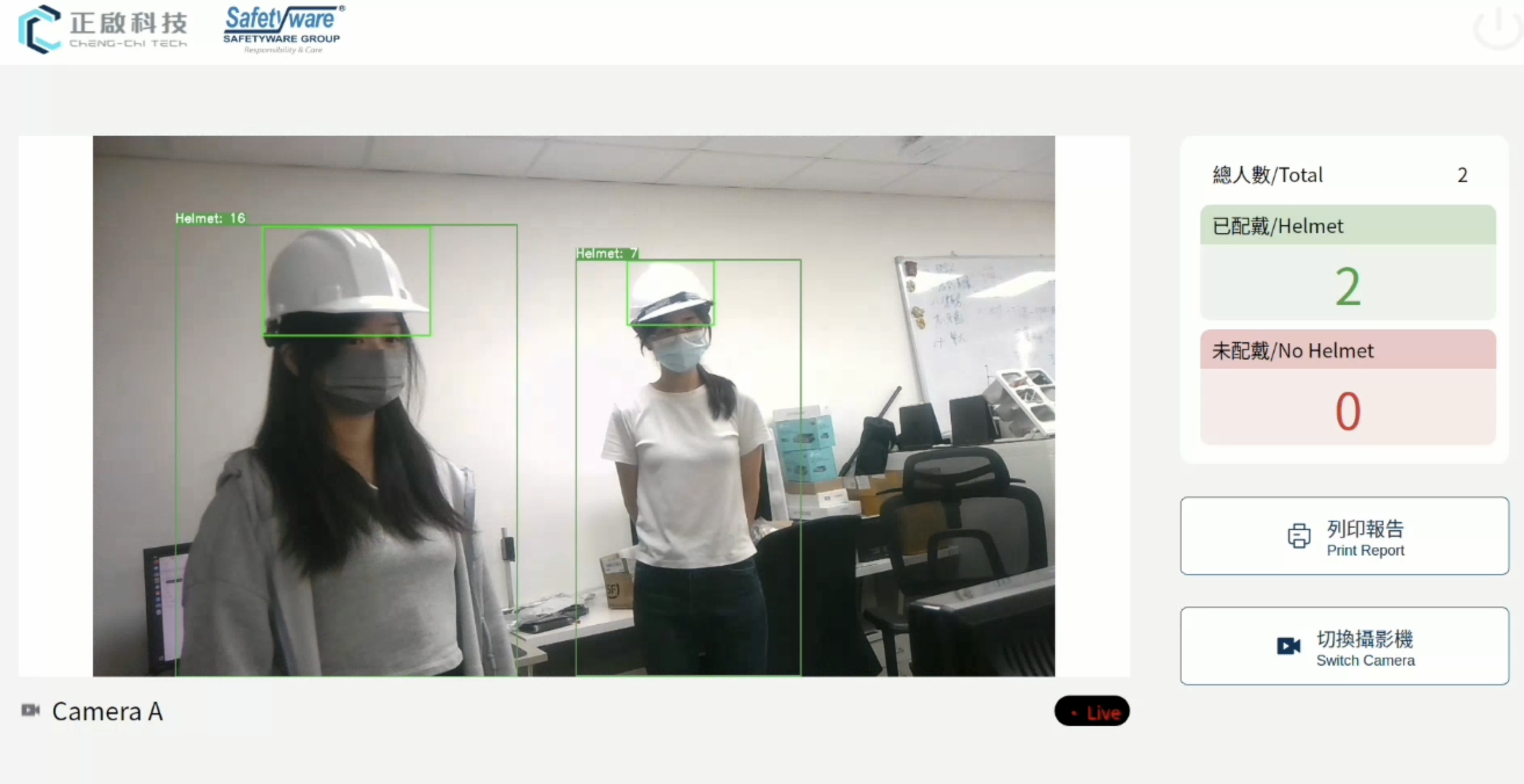 本專案主要功能為透過人工智慧影像辨識技術,即時偵測工地現場人員是否正確佩戴安全帽,以強化施工安全管理並降低職災風險。系統整合工業攝影鏡頭與NVIDIA Jetson系列邊緣運算模組,於現場即時執行AI推論作業,當偵測到未佩戴安全帽或進入禁區等異常狀況時,立即觸發聲光警示並將影像紀錄與警報資訊同步回傳至管理平台,協助管理人員即時掌握現場安全狀況。其應用功能包括:安全帽佩戴辨識、違規行為告警、出入稽核記錄、異常事件回報及安全報表生成等,能有效取代人工巡查,提高監測效率與精準度。 應用產業與場域涵蓋建築工地、營造工程、廠房施工、高科技廠區、公共工程及能源設施等高風險工作場所。系統同樣可延伸至製造業智慧工廠,用於監測人員是否配戴安全防護具(如護目鏡、耳罩、防護服等),或應用於物流倉儲與港口作業,進行人員進出監控與安全紀錄管理。未來更將逐步擴充至「安全背心」、「安全面罩」、「安全手套」等個人防護裝備(PPE)辨識模組,實現多項安全裝備同步監測,建立智慧工地的整合防護機制。 AI技術運用方面,系統採用Roboflow平台標註並訓練多場域影像資料集,使模型能於多角度、強光或低光環境下仍具高精確率。模型部署於Jetson Nano或Orin NX等邊緣端設備,具備低延遲與離線運作能力;同時結合AIoT架構與雲端資料庫,能自動產生違規統計與趨勢分析報表,協助管理單位掌握安全遵守率與風險熱點。 實際應用案例包括:於建築工地導入本系統後,透過AI即時警示與影像紀錄功能,顯著提升施工現場安全性與管理效率。整體而言,本技術可作為智慧工地及智慧製造之基礎模組,為產業提供自動化、可視化與智慧化的勞安管理解決方案。